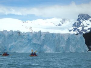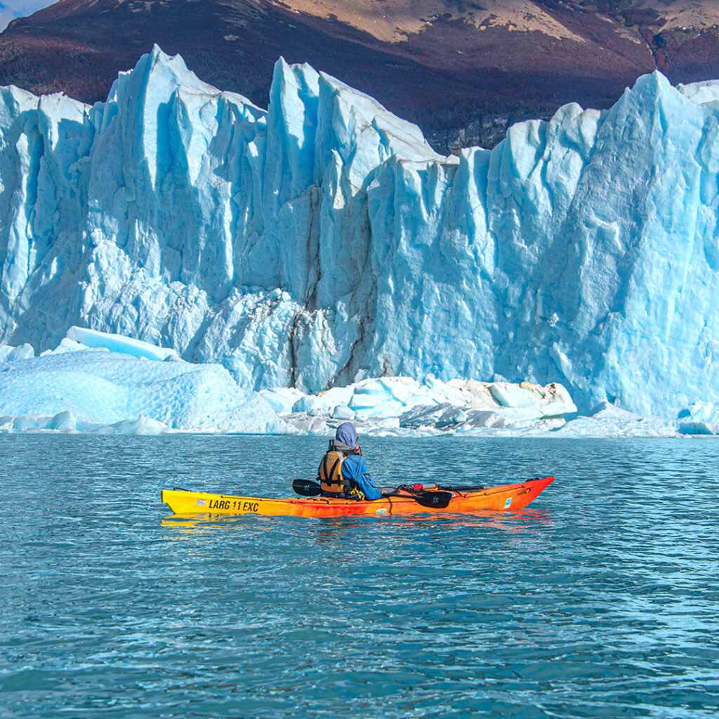 Una vez listos, comienza la verdadera aventura: 1 hora y media de kayak frente a la impresionante pared de hielo del Perito Moreno, un lugar de belleza única y naturaleza deslumbrante que permanecerá en tu memoria para siempre.