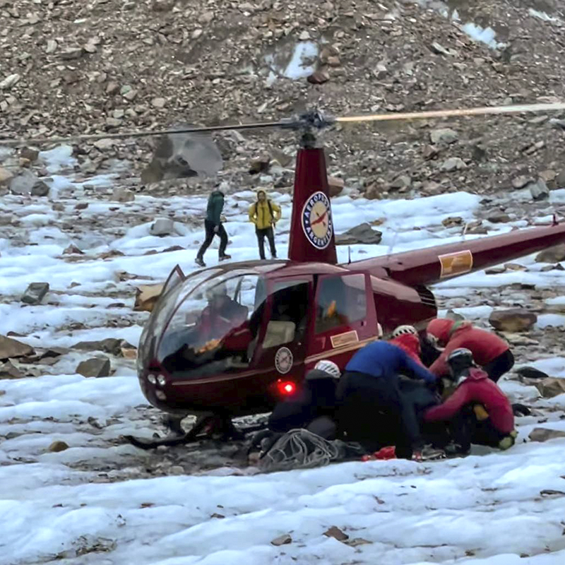 Al día siguiente, a las 6:30 de la mañana, y después de evaluar las condiciones meteorológicas, el helicóptero comenzó la evacuación de las montañistas, llevando a cabo vuelos de recuperación desde el punto del accidente, cerca del Chaltén, hasta la base del Torre, un terreno complicado tanto para el acceso aéreo como terrestre.